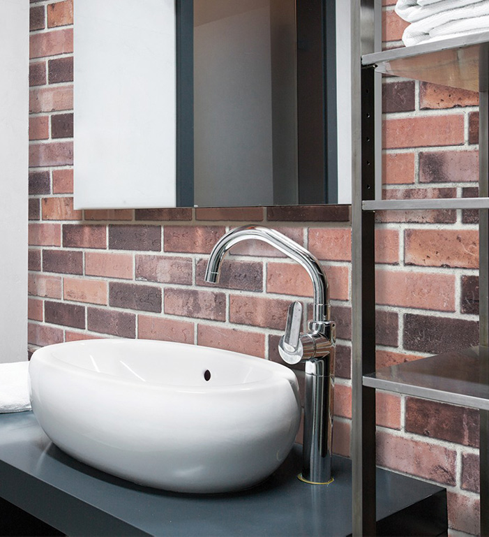 Especially designed for kitchen and bathroom environments (i.e.: backsplashes), the tiles are resistant to the heat of stovetops and the humidity of bathrooms (do not use in shower).